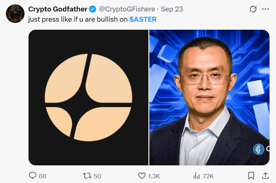 Part of that buzz comes from its backer: CZ, the founder of Binance. Combine that with the fact that $ASTER isn’t even listed on the Binance CEX yet — a listing that would almost certainly bring another wave of liquidity and retail interest — and you’ve got traders circling like sharks.