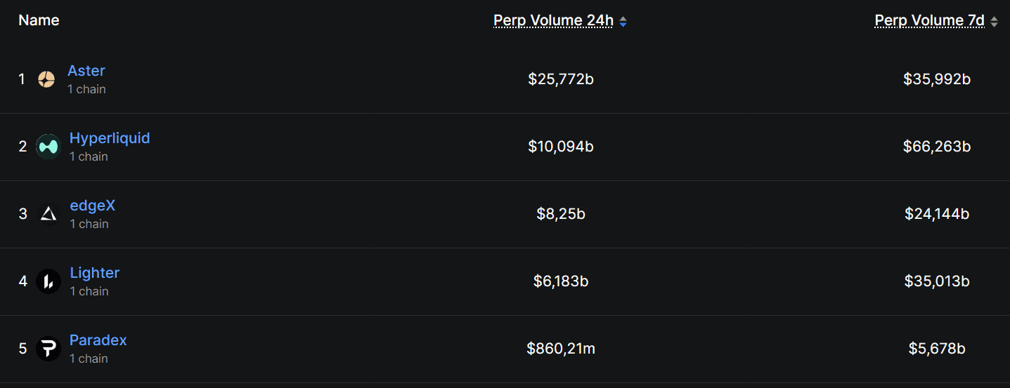 That’s what Hyperliquid exchange did — it brought CEX-like speed and liquidity to an on-chain world. And now, with new players like Aster, Avantis, and Lighter, the race for the top perp DEX is heating up. Each brings its own perks: from higher leverage to broader asset coverage, showing there’s still plenty of room for innovation.