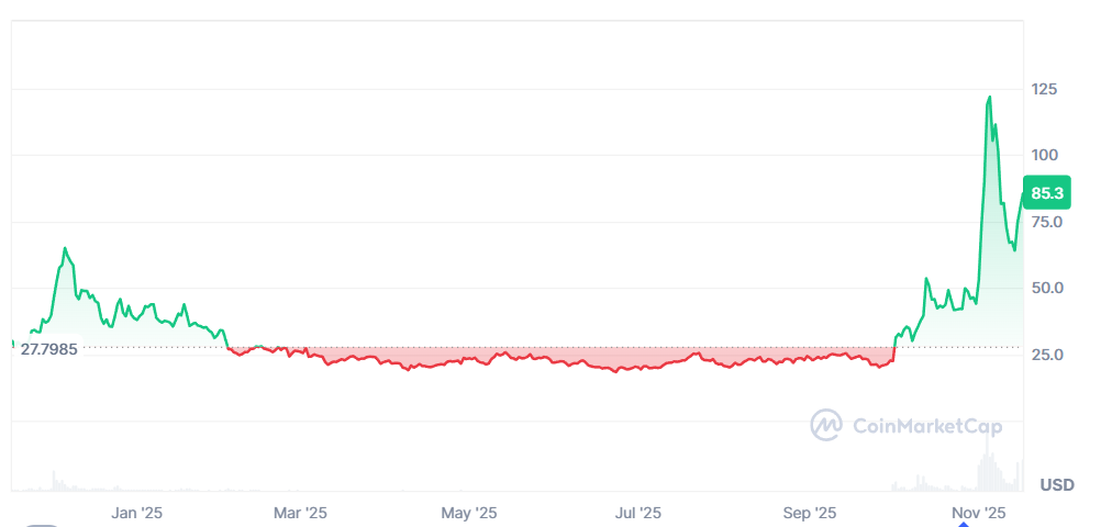 A look at the Zcash price chart shows how aggressive the move has been. Months of quiet sideways action was followed by explosive upside.