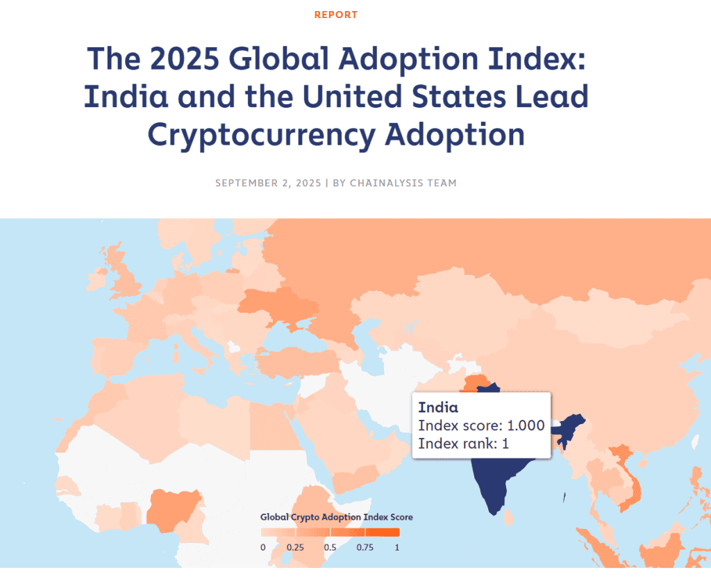 The appetite for crypto in India is massive and growing. India now ranks #1 globally in the Chainalysis 2025 Global Crypto Adoption Index, with strength across retail, institutional, and DeFi metrics. In the 12 months to June 2025, crypto transaction volume across APAC jumped 69% year-on-year, with India being the driving force of that surge.