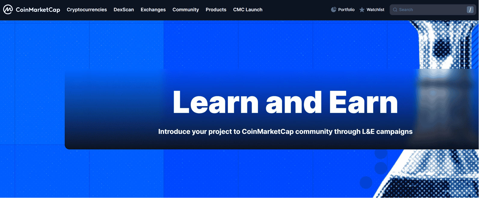 CoinMarketCap (CMC), one of the most popular crypto data websites, also runs a Learn-to-Earn program.