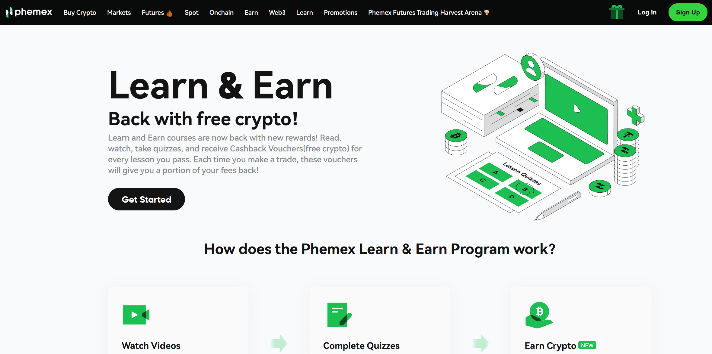 Phemex, a global crypto exchange, has its own twist on Learn-to-Earn. Instead of giving out free tokens, it rewards users with trading credits that can be used to reduce fees or pay for transactions on the platform.